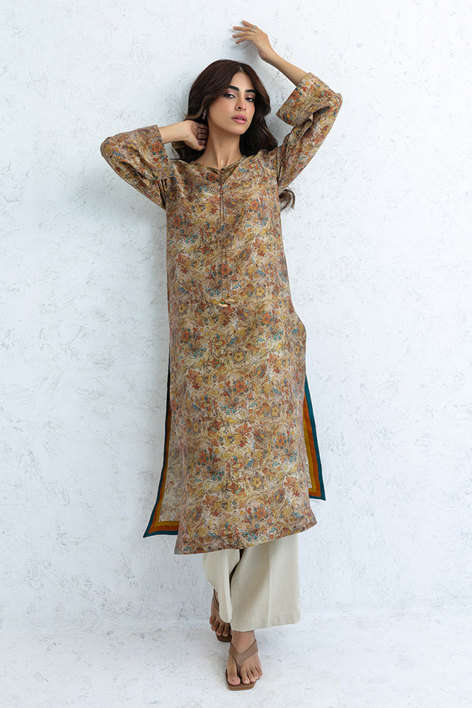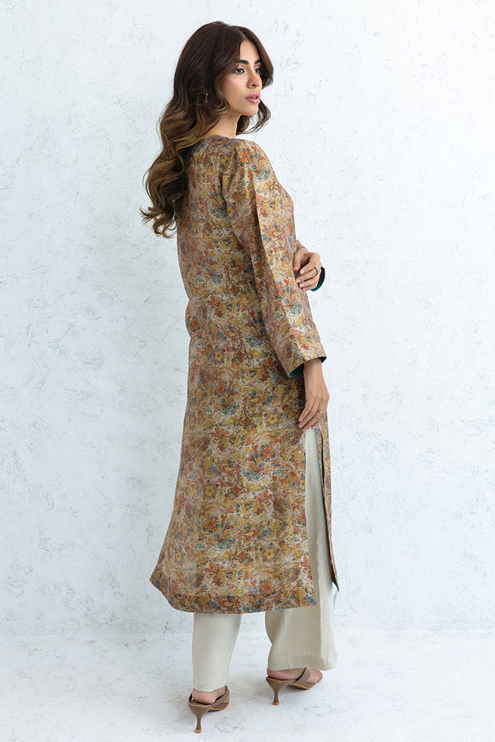 – Design Details: Multi-colored facing on side slits, hem & sleeves