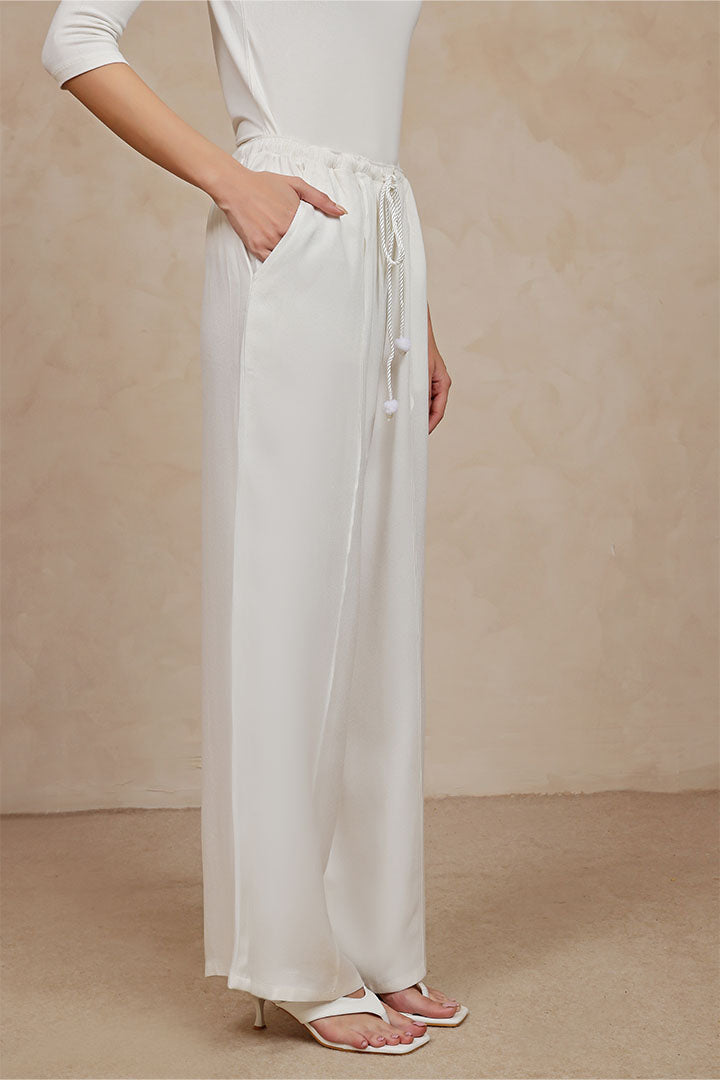 Design Detail: Wide leg silhouette with center pintuck detailing. Belt with a drawstring for comfort.