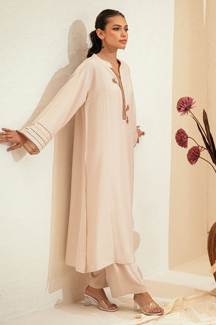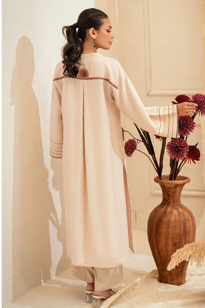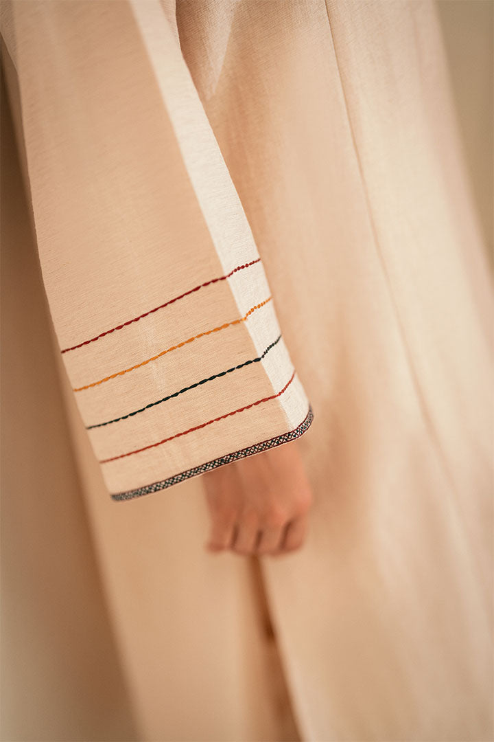 Design Details: Long embroidered shirt with a ban collar, embroidery on the neck placket, front and back.