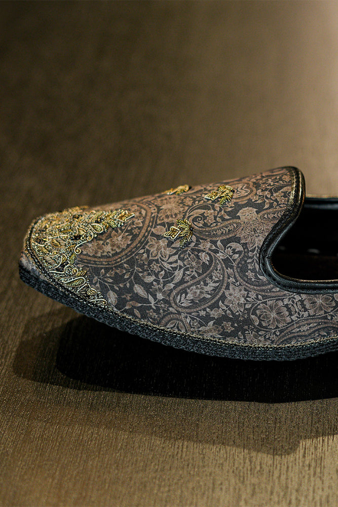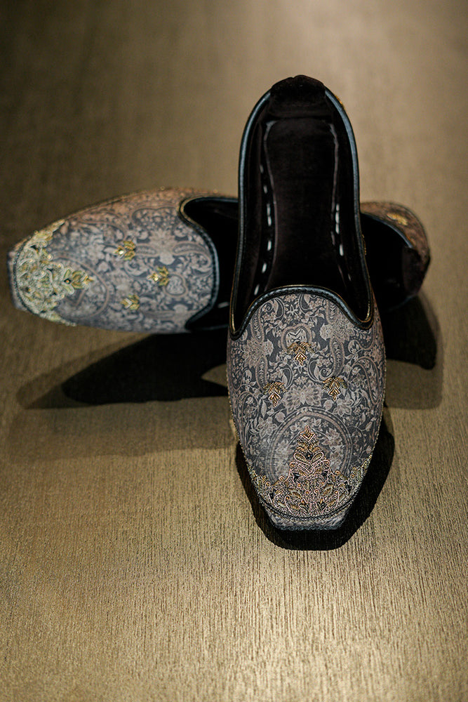 Embroidered khussa perfectly coordinated with the couture sherwani for a refined look.