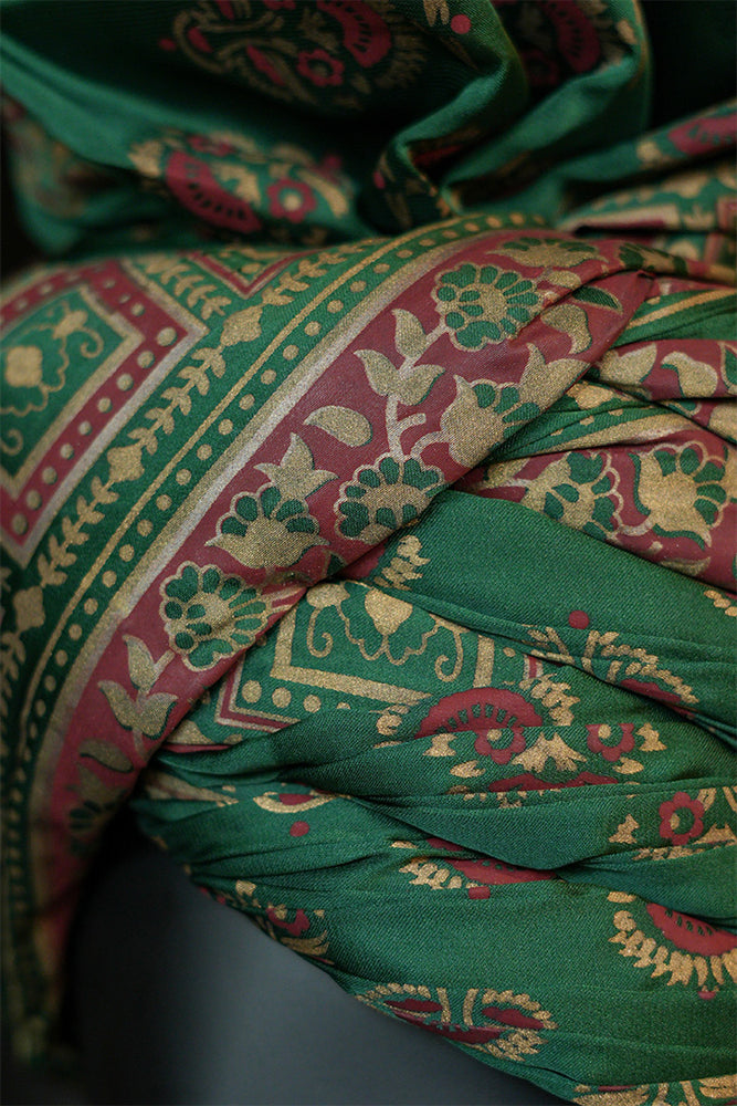 Rajasthani turban featuring red and gold screen print, for traditional elegance for a festive look.