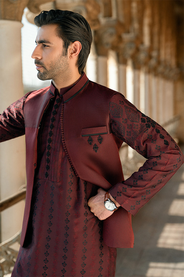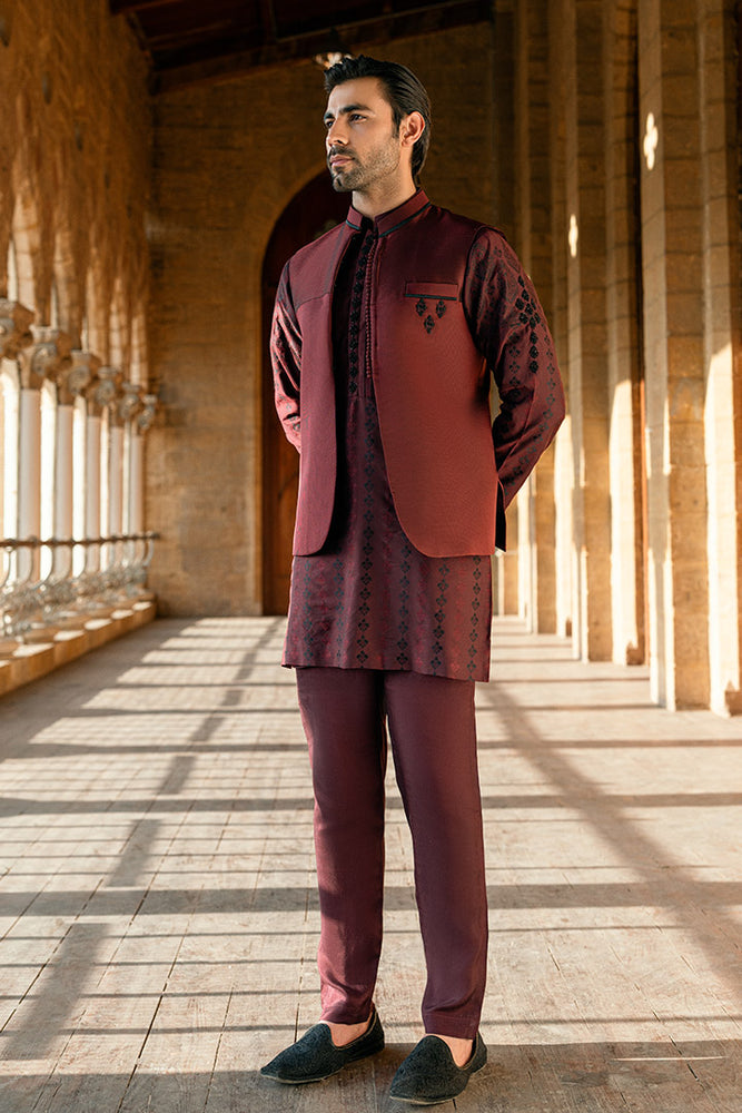 Maroon Qatan Silk Kurta