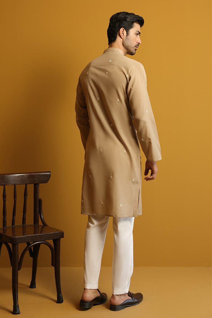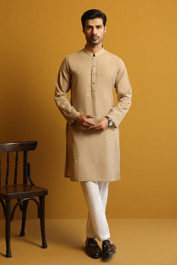 Abstract Jacquard Beige Kurta