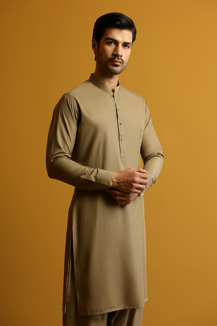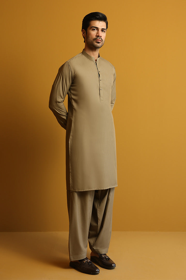 Demir Dark Khaki Kameez Shalwar