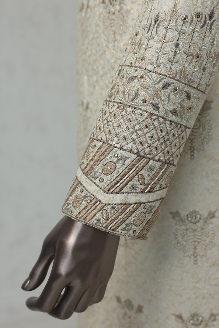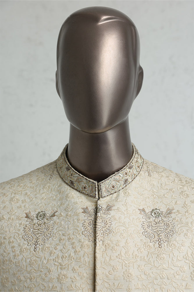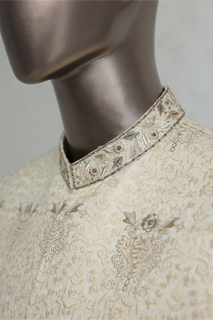 Traditional Embroidered Cream Sherwani