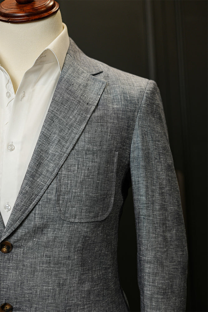 This Tailored Men's Jacket Blends Contemporary Style With Classic Detailing. It Features Patch Pockets, A Notch Collar, And Horn Buttons, Creating A Refined And Sophisticated Look.