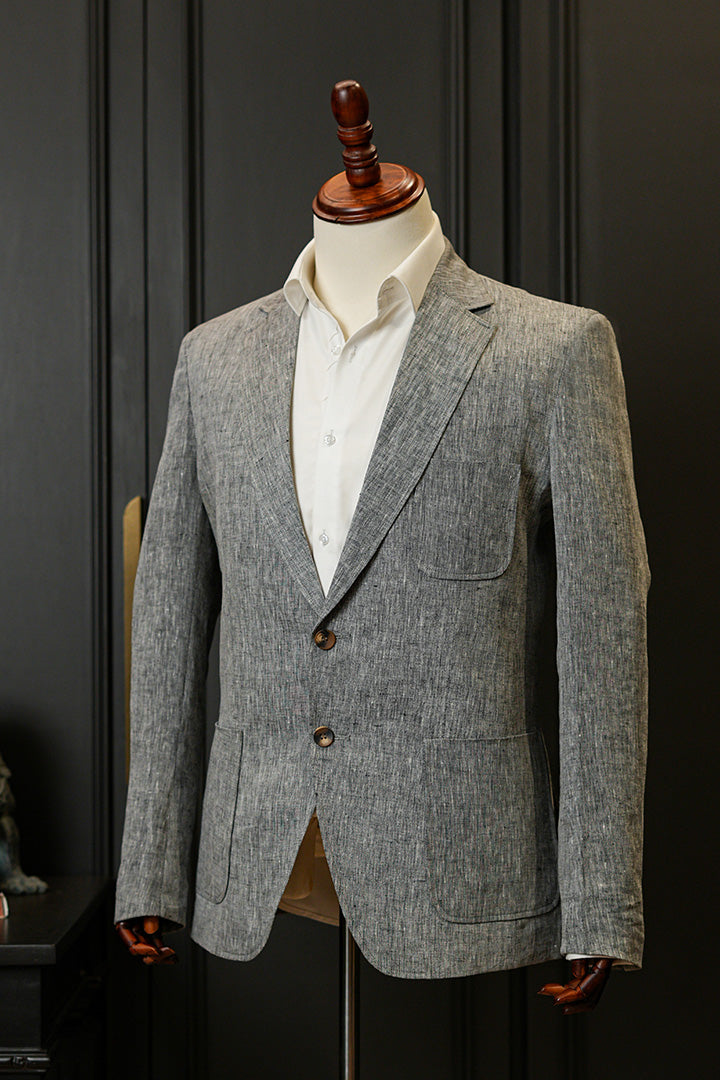 This Tailored Men's Jacket Blends Contemporary Style With Classic Detailing. It Features Patch Pockets, A Notch Collar, And Horn Buttons, Creating A Refined And Sophisticated Look.