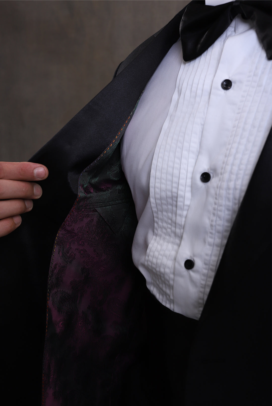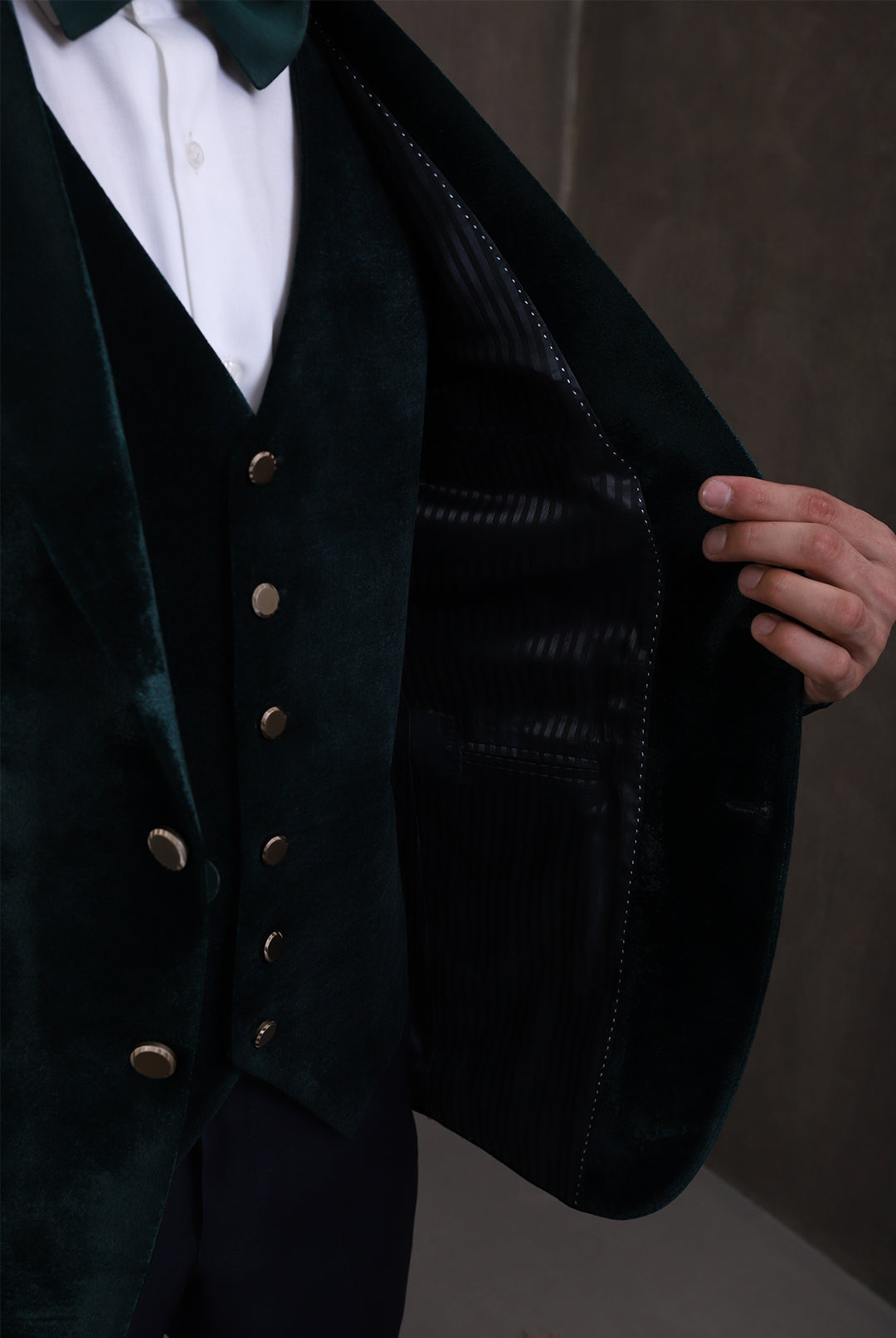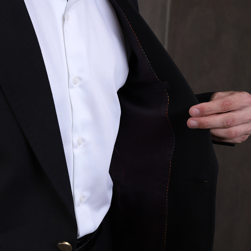 - Collar: Shawl Lapel of Same Fabric