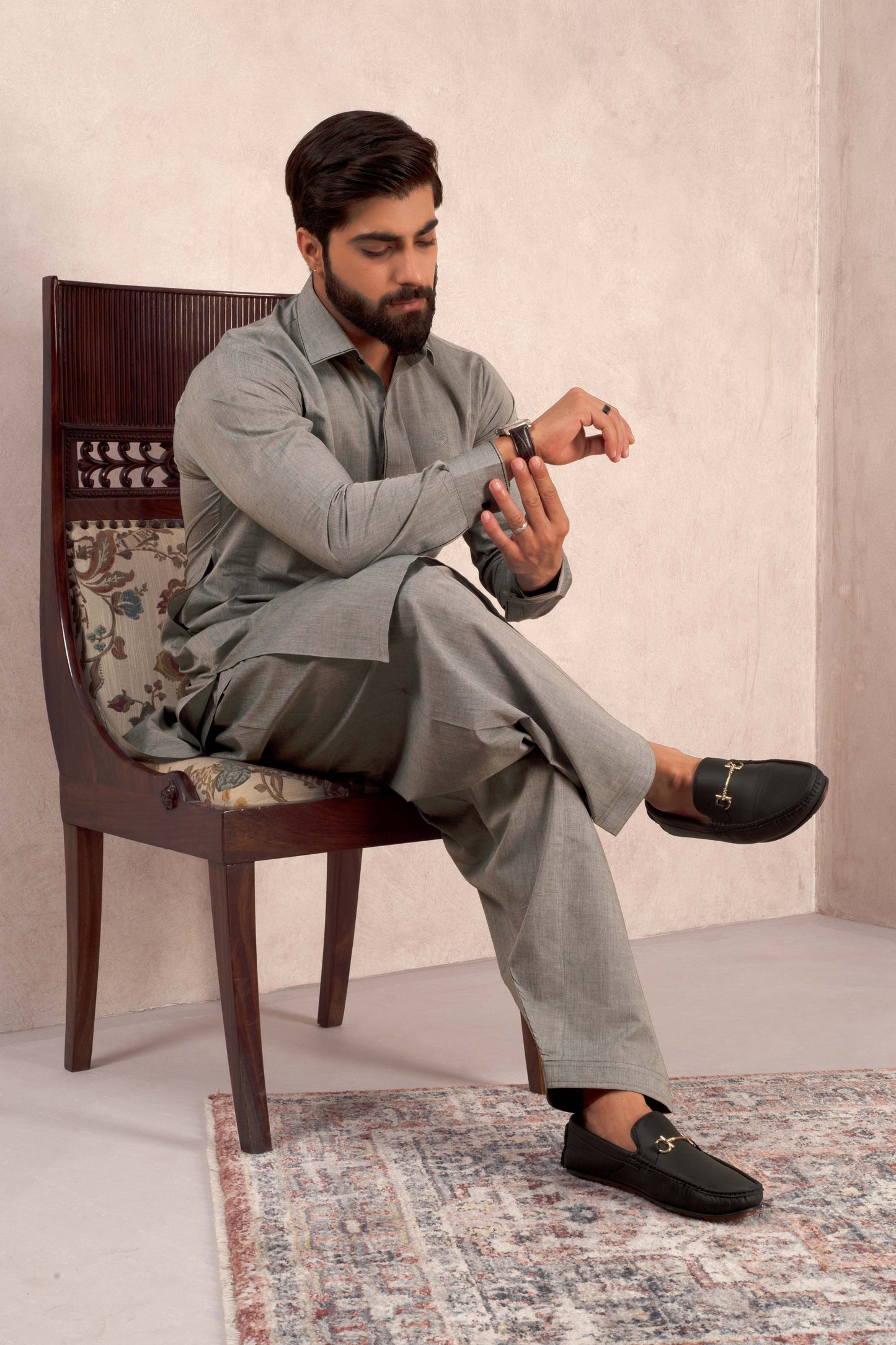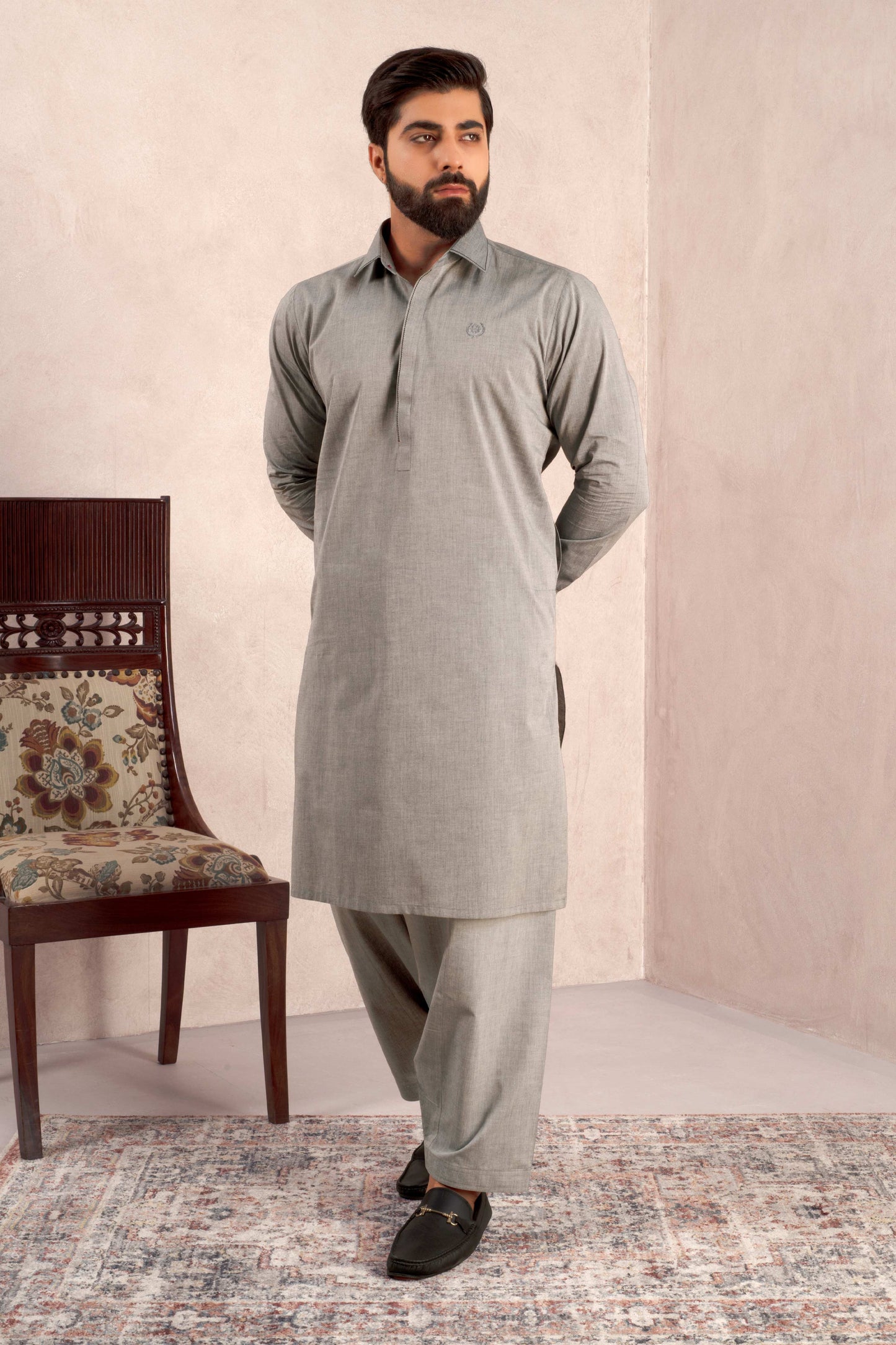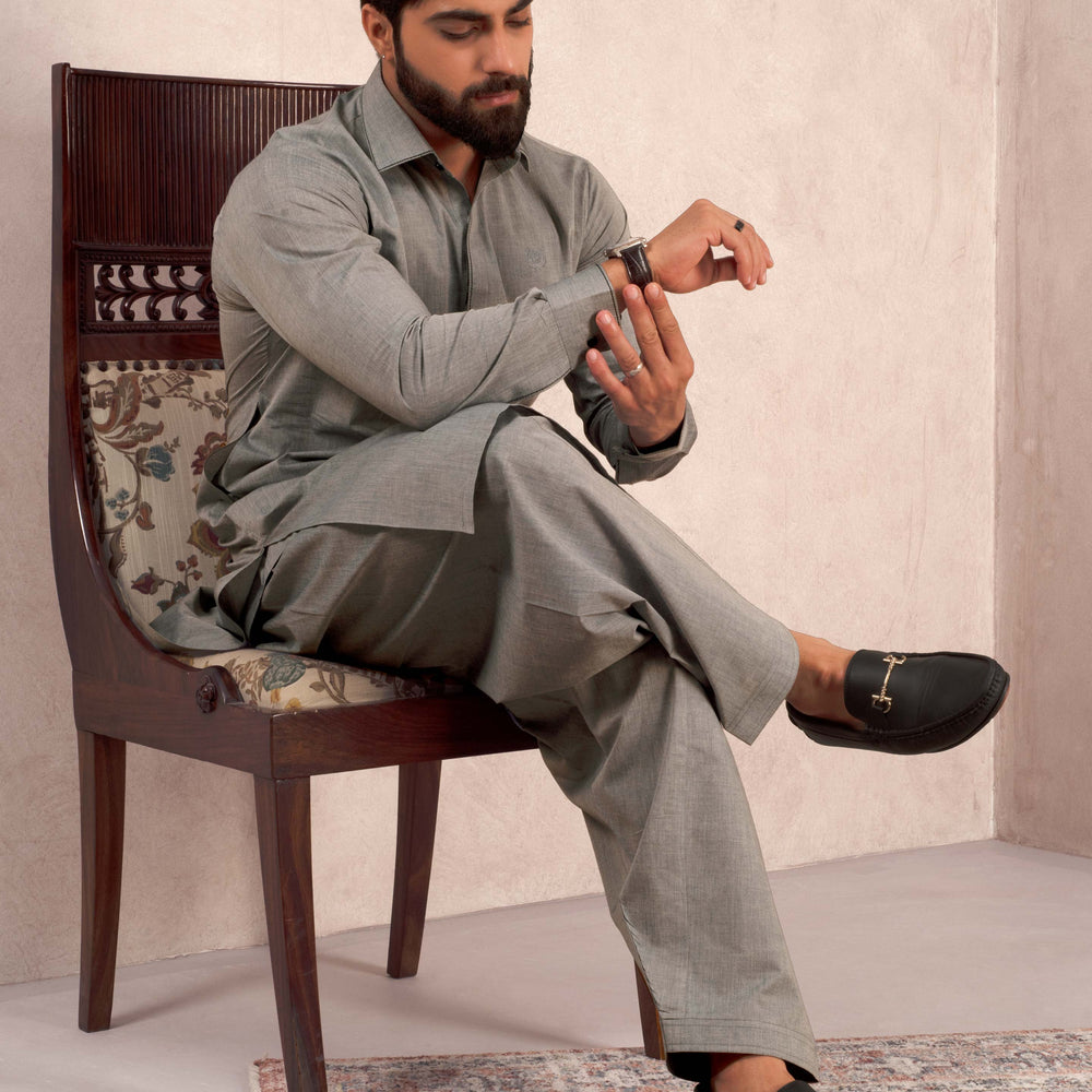 Aks - Dolphin Grey Blended Kameez Shalwar