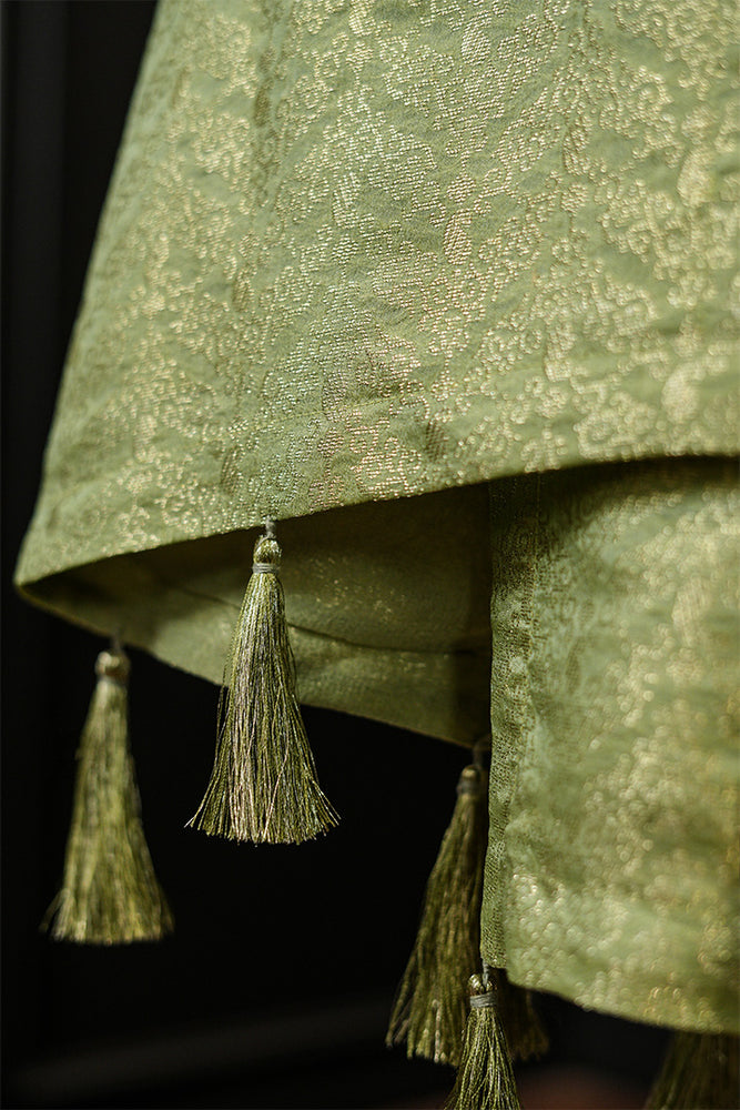 Brocade stole featuring tassels along all edges for a classic and elegant touch.worn on a kurta.